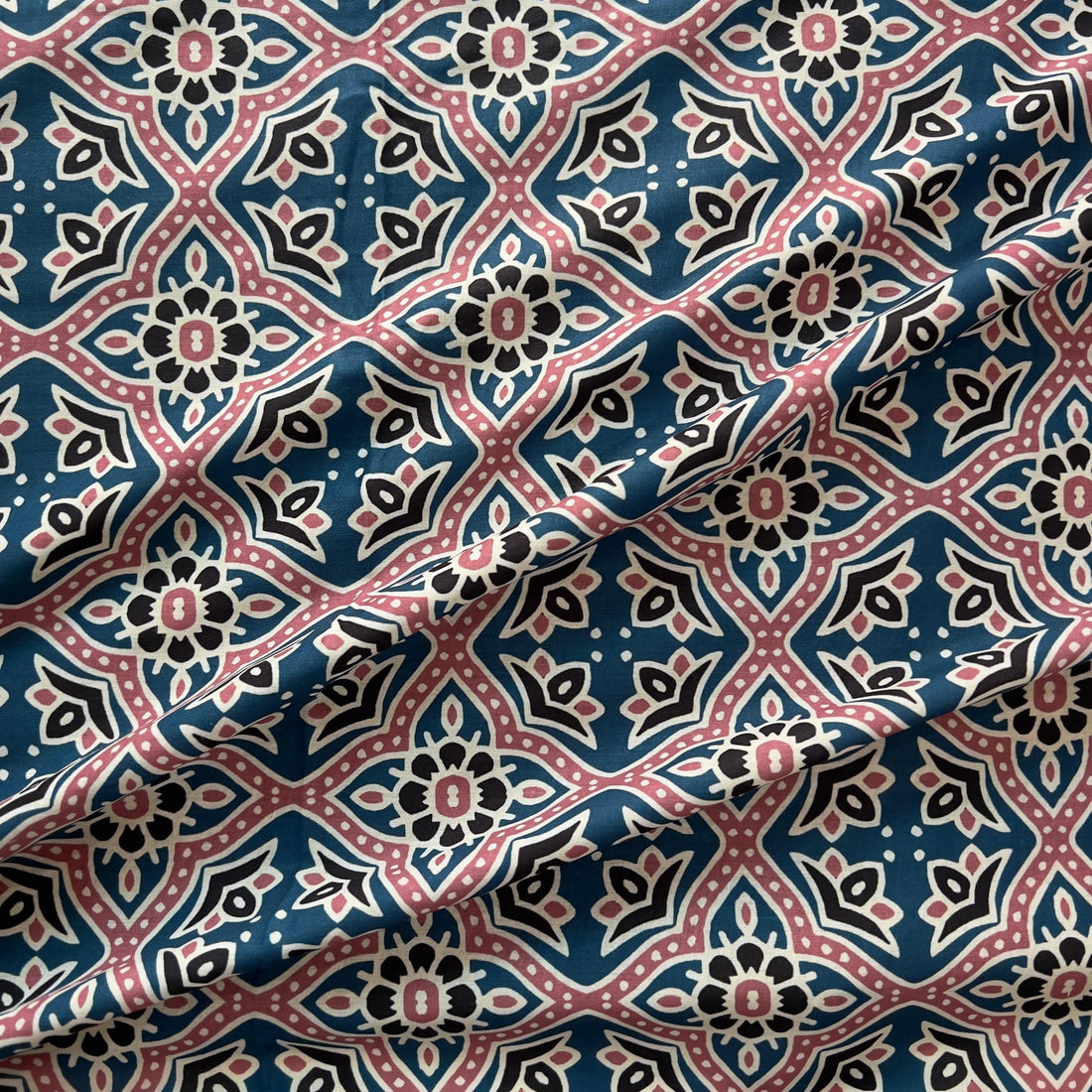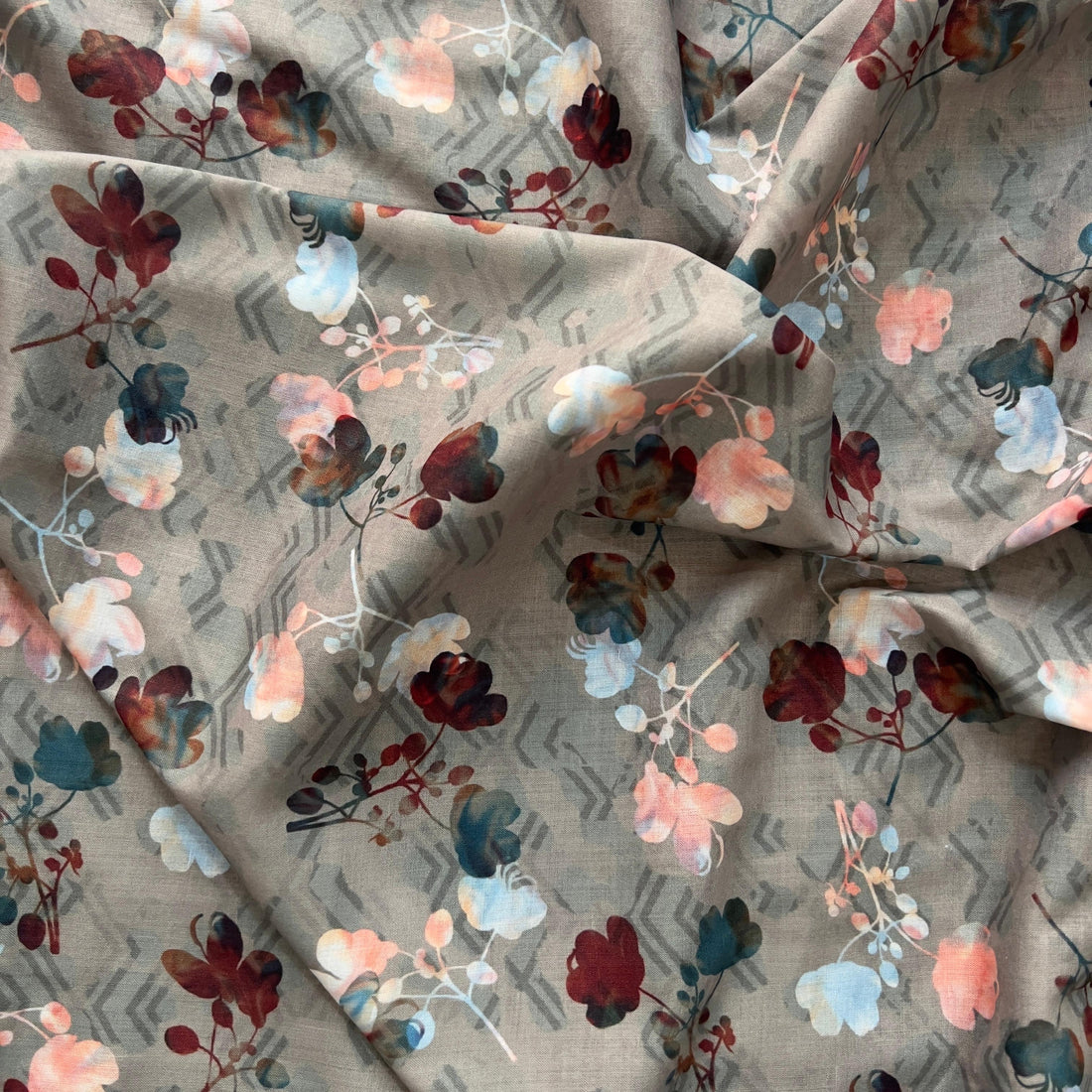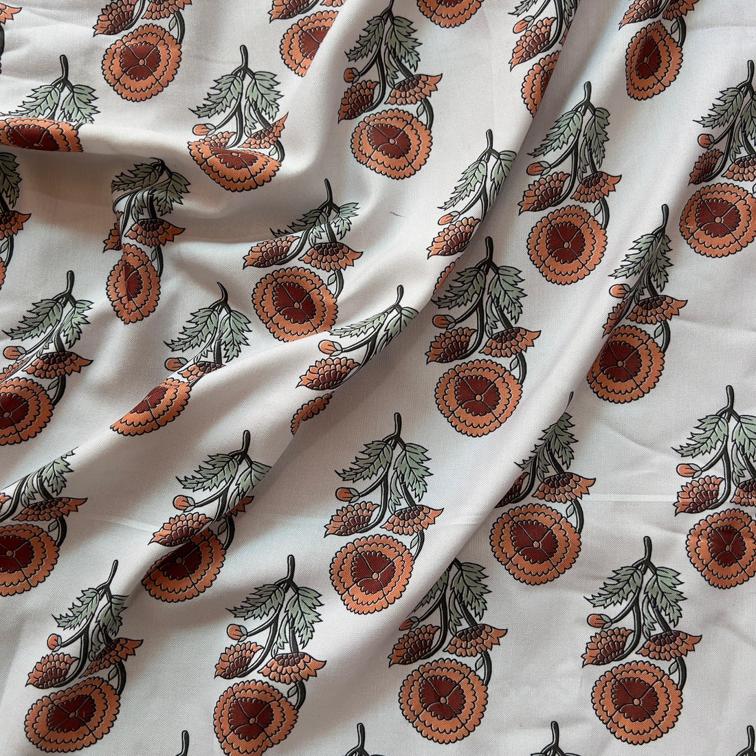 Cream-Coloured & Pink Floral Printed Pure Cotton Kurti