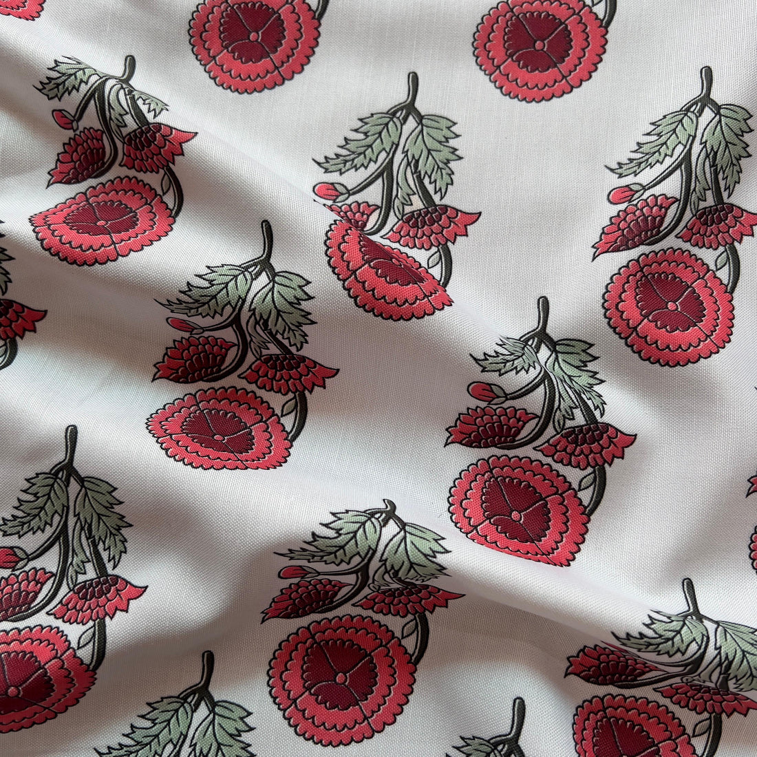 Cultural Bloom: Red Kalamkari Saree with Beige Border