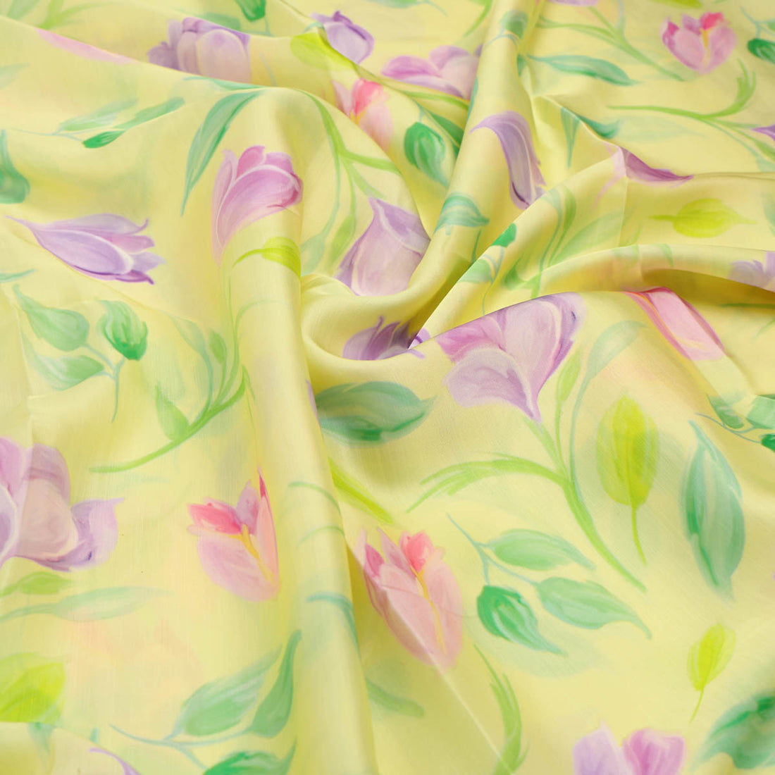 Vibrant Floral Tabby Silk Fabric for Ethnic Wear