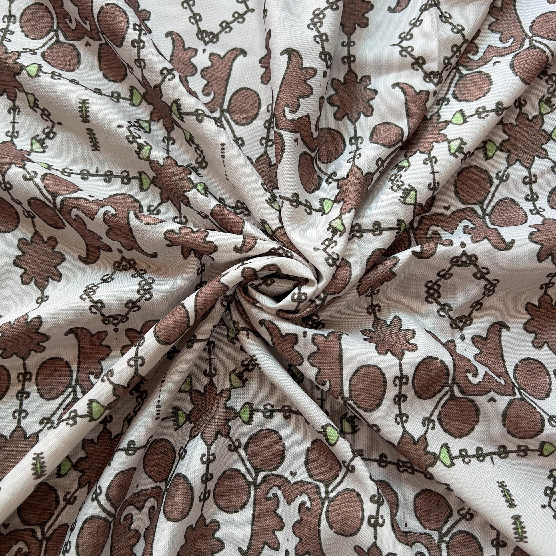 Introducing our unique ethnic design on rayon fabric. The intricate pattern features a darker brown shade, adding depth and richness to its eye-catching design. Made from high-quality rayon, this fabric is lightweight and durable, making it perfect for a variety of projects. Elevate your creations with our ethically sourced fabric.
