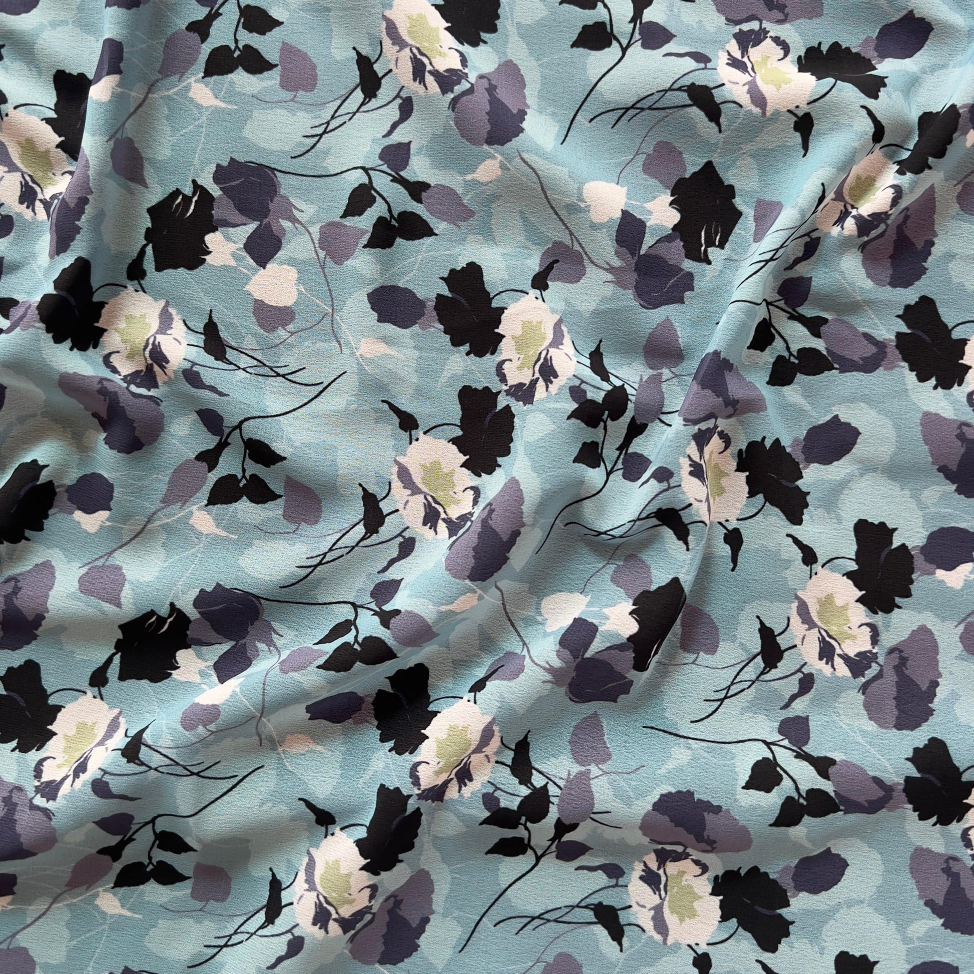 This georgette fabric features a tasteful and eye-catching overlap of blue floral patterns. With its elegant and versatile design, it is sure to add a touch of sophistication and style to any garment or project. Made with the finest materials, this fabric offers a luxurious and high-quality finish.