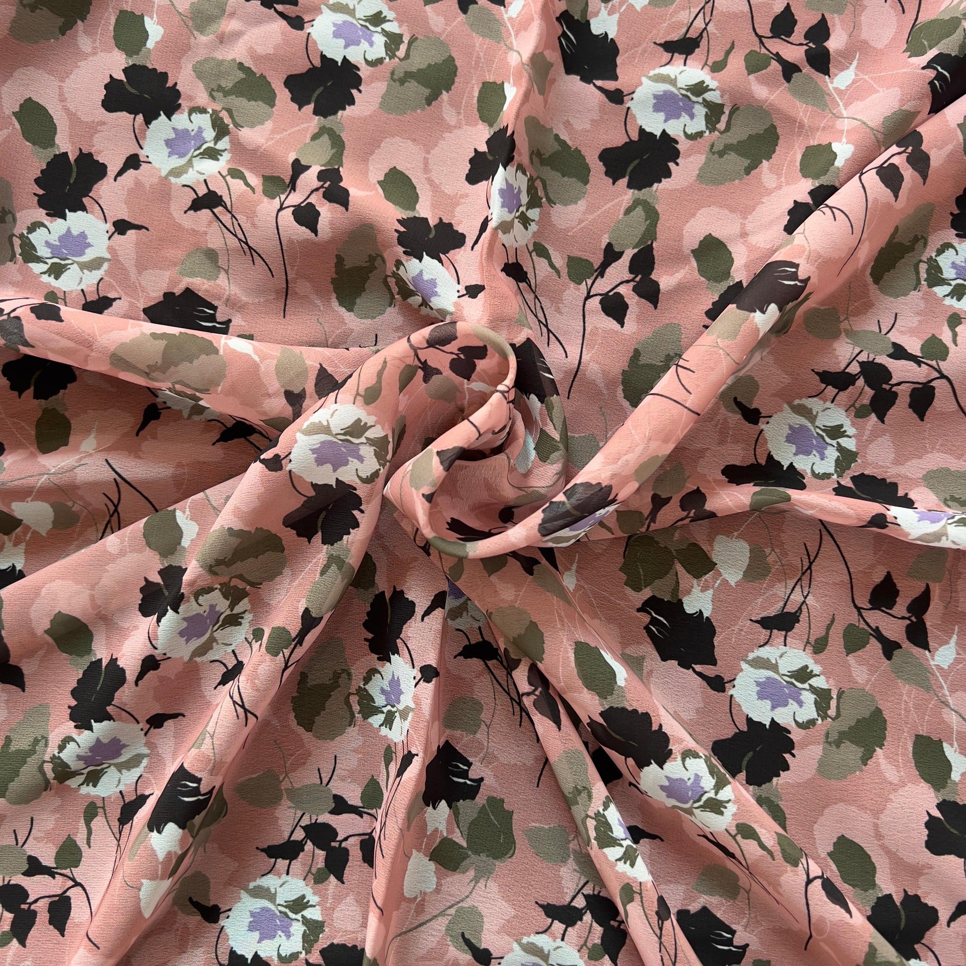 This georgette fabric features a tasteful and eye-catching overlap of dusty rose floral patterns. With its elegant and versatile design, it is sure to add a touch of sophistication and style to any garment or project. Made with the finest materials, this fabric offers a luxurious and high-quality finish.