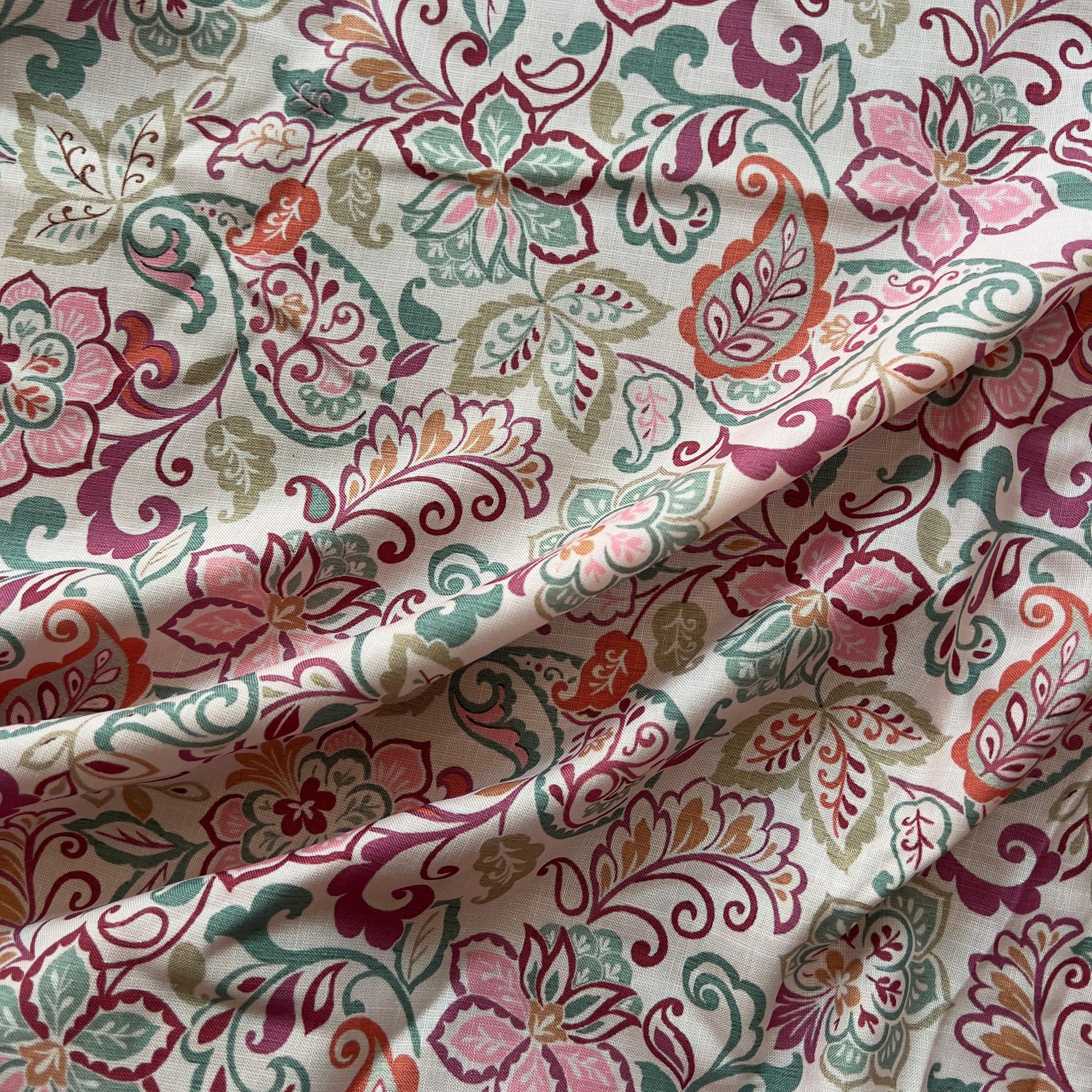 Experience the subtle sophistication of our geometrical paisley pattern on linen. This unique design elevates any room with its intricate yet modern print. Made from high-quality linen, this product offers both durability and style. Add a touch of elegance to your home decor with our geometrical paisley pattern on linen.