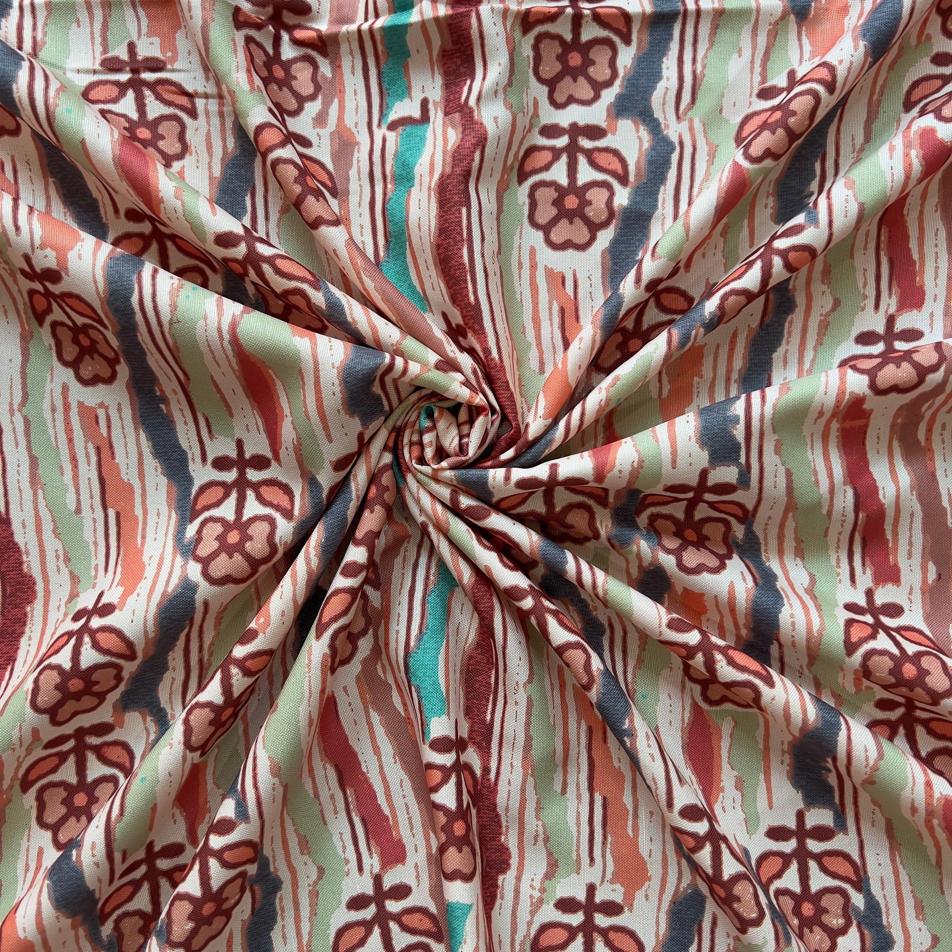 Expertly crafted using the traditional Ajrakh technique, this rayon fabric showcases a stunning digital print that is both rich in color and intricate in design. The result is a unique piece that combines modern technology with traditional art, providing a cultural and stylish addition to your wardrobe.